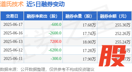 本站消息长富资本,6月17日,道氏技术(300409)融资买入8417.27万元,融资偿还9849.36万元,融资净卖出1432.09万元,融资余额9.32亿元,近20个交易日中有12个交易日出现融资净买入。